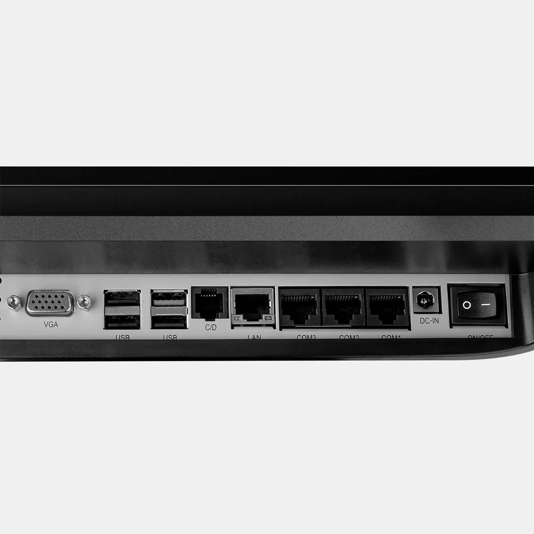 Terminal de punto de venta semi industrial, robusto, fiable y con excelente relación calidad precio, ideal para responder a las exigencias que demanda el crecimiento de tu negocio. Cuenta con una pantalla bezel free (sin marco) de 15” con tecnología capacitiva que soporta salpicaduras de agua. Base desmontable para rackear en la pared, cuenta con un display posterior de cliente de 2 líneas