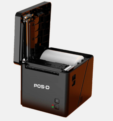 Impresora térmica de tickets de la marca POS D funcional, práctica y económica, ideal para pequeños negocios cuyo volumen de impresión de tickets diario es moderado, fabricada con plástico resistente al agua, aceite y polvo.